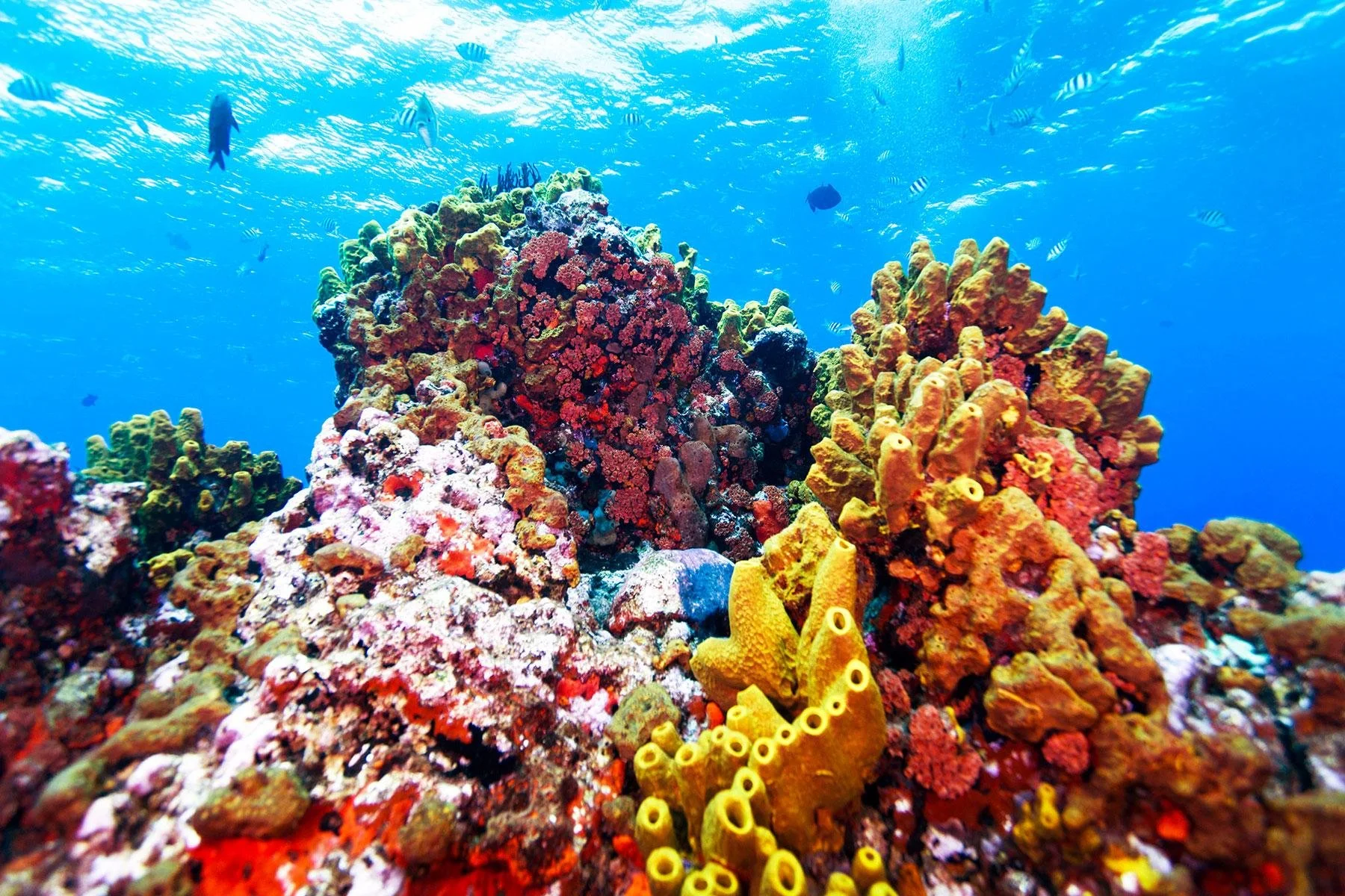 The Turks and Caicos Islands are home to some of the most spectacular coral reefs in the Caribbean. The barrier reef system surrounding the islands features a rich variety of corals, underwater caves, and diverse marine life, including eagle rays, nurse sharks, and vibrant reef fish.